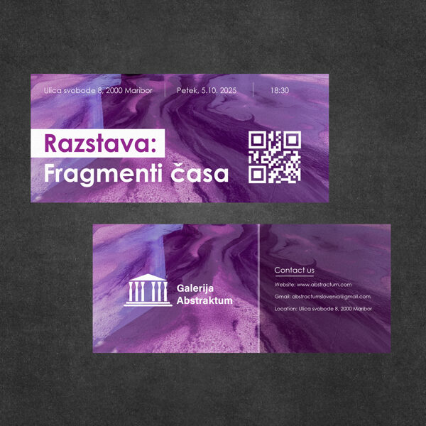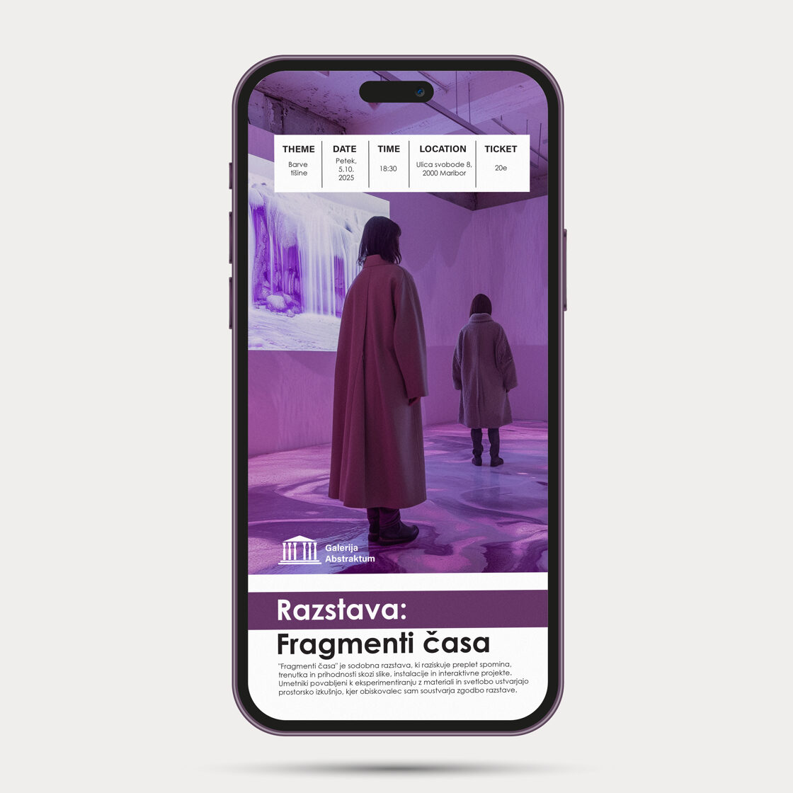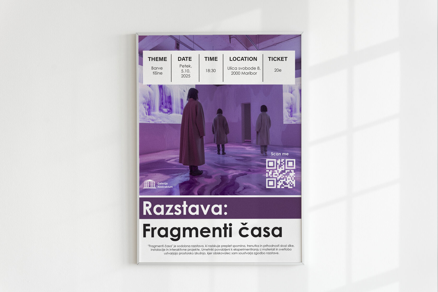 Designed the visual identity for Gallery Abstraktum’s modern art exhibition, using a palette of purple and white to evoke a sense of elegance and mystery. The use of a sans-serif font emphasized modern minimalism, while the overall composition aimed to create a magical and immersive atmosphere. The project focused on balancing simplicity and emotional depth, allowing visual elements to communicate the abstract theme.